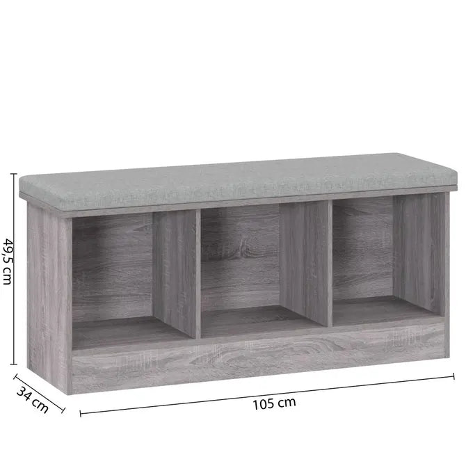 Трите отделения са идеални за обувки, чанти, аксесоари или домашен текстил, а компактният дизайн помага да оптимизирате пространството без компромис с визията. Пейката се вписва лесно в различни интериорни стилове и е отлично решение за поддържане на подреден дом.