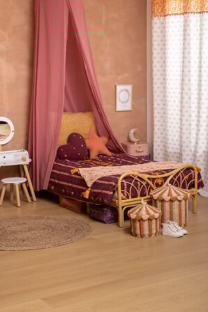 Детският спален комплект atmosphera е изработен от мек памук и осигурява комфортен и спокоен сън. Семплият дизайн позволява лесно съчетаване с всякакъв интериор и може да се комбинира с цветни възглавници и аксесоари за повече настроение в детската стая.