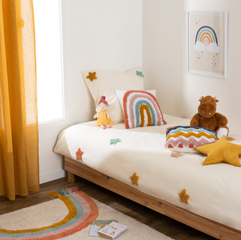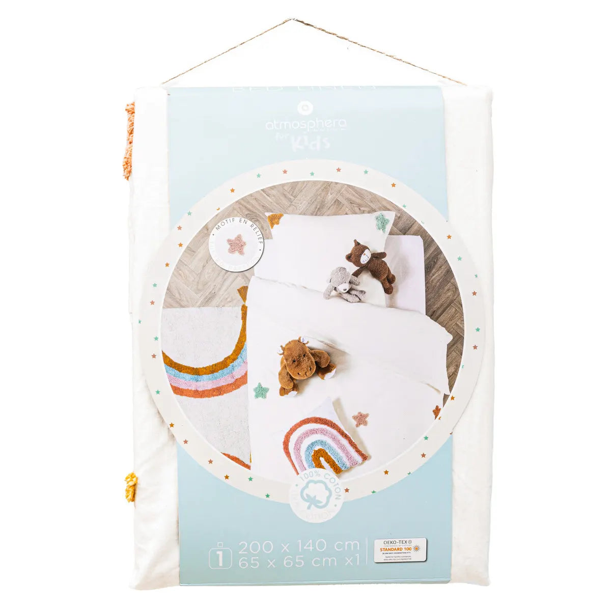 Детският спален комплект atmosphera е изработен от мек памук и осигурява комфортен и спокоен сън. Семплият дизайн позволява лесно съчетаване с всякакъв интериор и може да се комбинира с цветни възглавници и аксесоари за повече настроение в детската стая.