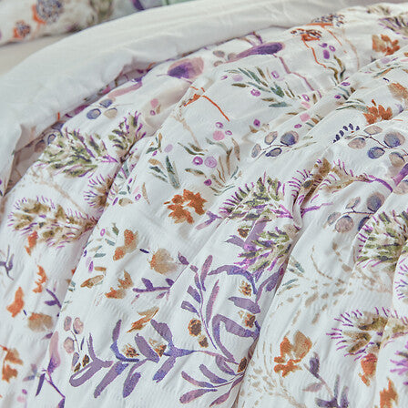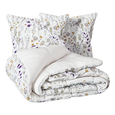 Комплект спално бельо Floral с размери 240 × 220 с принт. Изработен от смес от полиестер и памук, комплектът предлага мекота, лекота и комфорт, като позволява на кожата да диша. Seersucker тъканта с принт придава стилен и елегантен вид, не изисква гладене и запазва структурата си след многократно пране. Материята е практична и бързосъхнеща, идеална за ежедневна употреба, създавайки уютна и поетична атмосфера в спалнята.