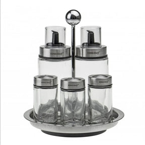 Комплект оливерник и солници Kinghoff 1648, 6 части, Въртяща се стойка, Стъкло/инокс
