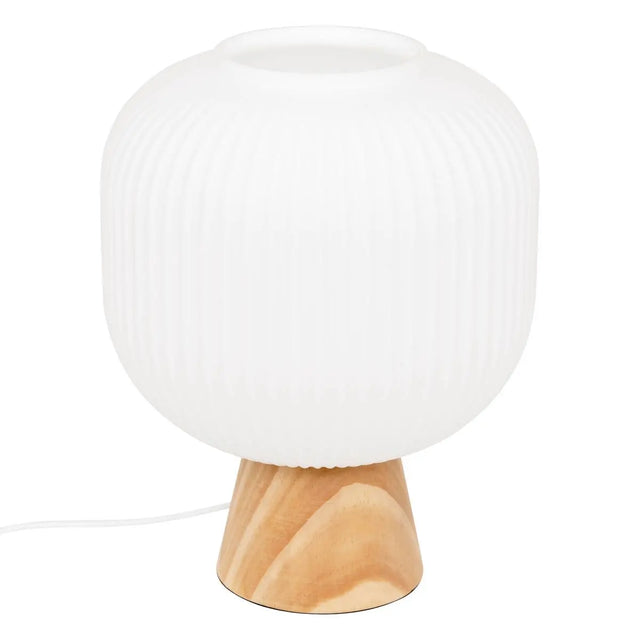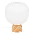 Настолна лампа с размери Ø20 x В25 см, изработена от стъкло и естествено дърво бор. Прозрачната стъклена структура придава лекота и елегантност, докато дървената основа внася топлина и уют. Тази хармонична комбинация я прави подходяща за спалня, всекидневна или кабинет, където съчетава практичност и стил. Крушка не е включена в комплекта.