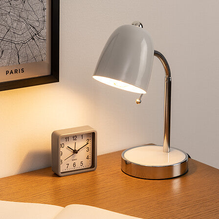 Нощна лампа от стомана – стилно и устойчиво решение за нощно шкафче или декоративен акцент, което съчетава здравина, минимализъм и модерно излъчване.