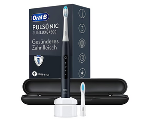 Звуковата четка за зъби Oral-B Pulsonic Slim Luxe 4500 Matte Black използва звукови вибрации за нежно, но ефективно почистване. С три режима на почистване и 31 000 движения в минута, тя премахва повече плака от ръчните четки за зъби, осигурявайки по-здрави венци и индивидуално измиване.