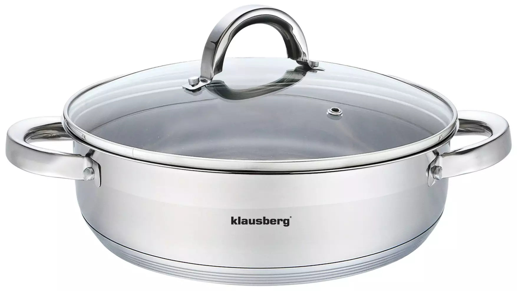 Тиган с дръжки и капак Klausberg 7173, 26 cm, 4,6 литра, Дебело дъно, Инокс