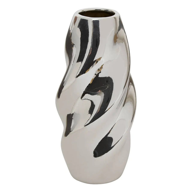 Ваза с височина 21,5 см и размери 10 x 10 см, изработена от керамика (доломит) в елегантен сребрист цвят. Подходяща за свежи и сухи цветя, както и като самостоятелна декорация.