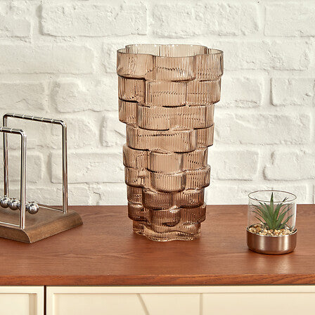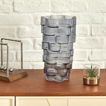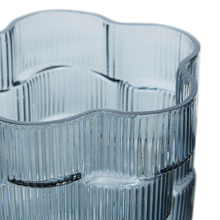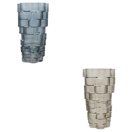 Ваза с височина 30 см и размери 16,5 x 16,5 см, изработена от стъкло с рифелована повърхност. Елегантен акцент за дома, подходяща за свежи и сухи цветя, както и като самостоятелна декорация.