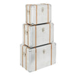 Стилен комплект от три декоративни сандъка в различни размери – S, M и L. Най-големият е с размери 54 x 33 x 41 см. Изработени от комбинация алуминий и MDF, сандъците са едновременно практични за съхранение и елегантен акцент в интериора.