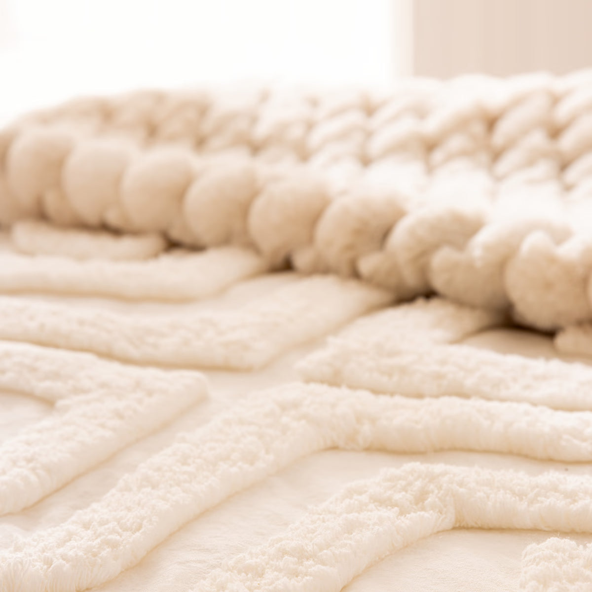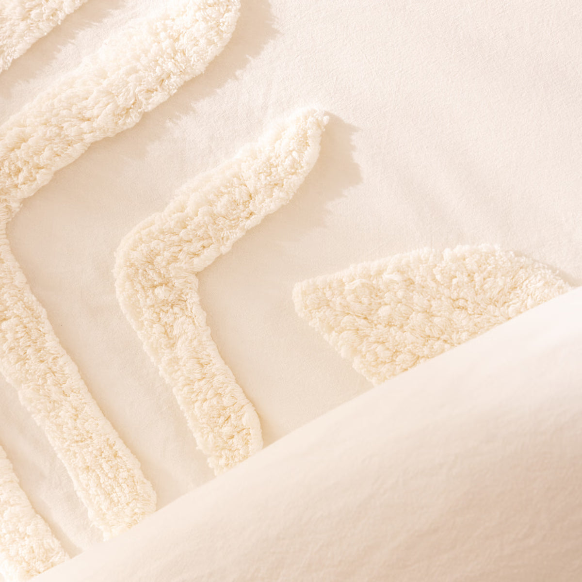 Подарете си уют и топлина в спалнята с елегантния комплект спално бельо , изработен от 100% естествен памук. Материята с плътност 60 нишки/см² предлага мекота, комфорт и дишаща структура, идеална за всички сезони. Туфтираният мотив добавя красив релеф и деликатна текстура, която придава усещане за лукс и природна елегантност. Ivory оттенъкът носи чист, мек и хармоничен вид, подходящ за всеки интериор.