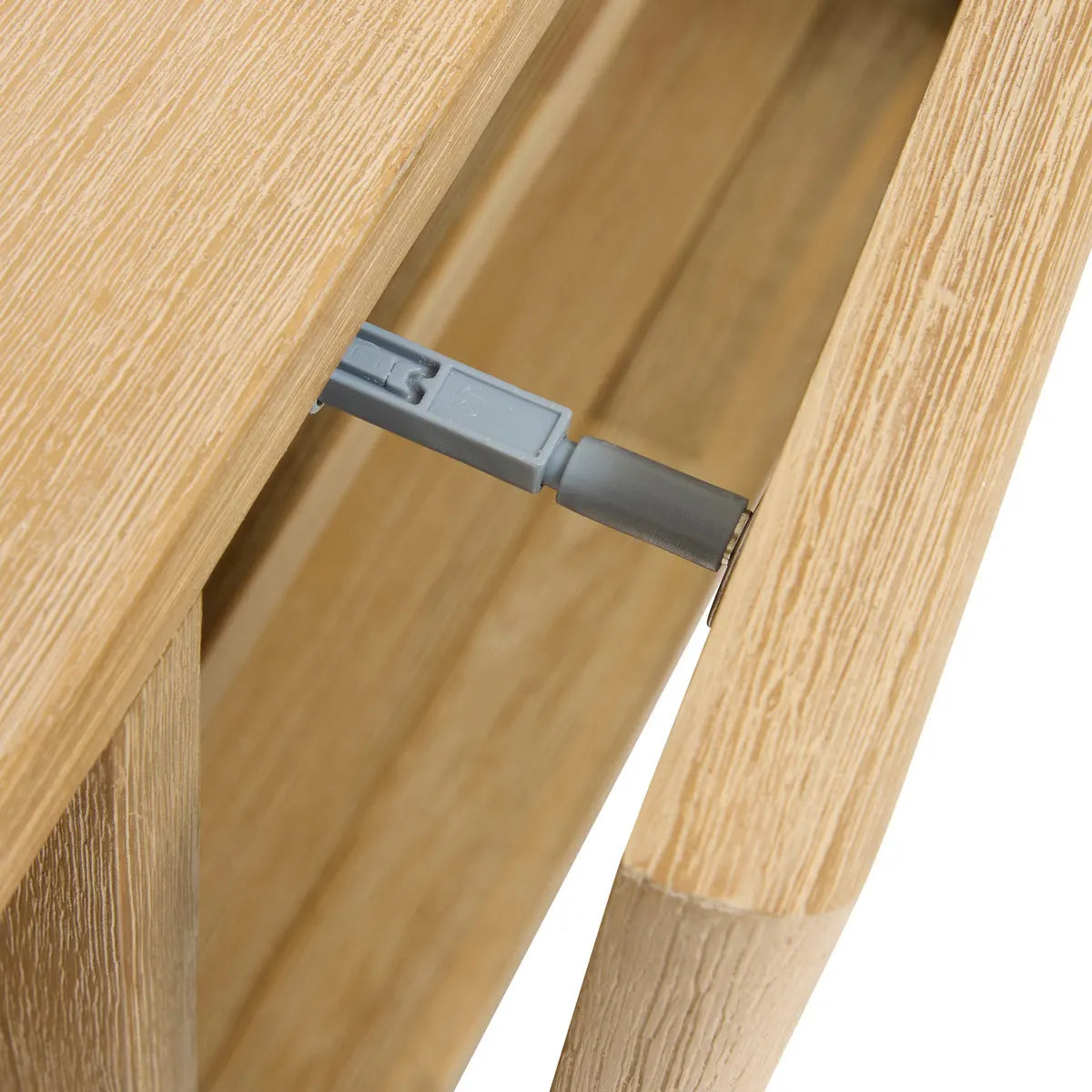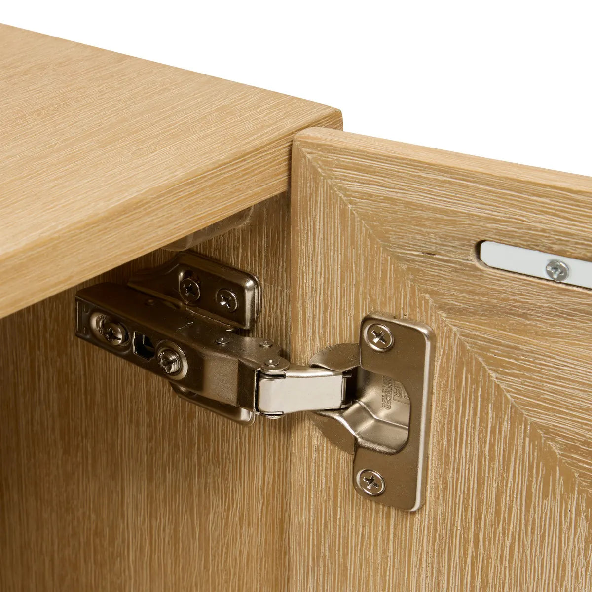 Системата за отваряне с натиск (push-to-open) и пантите с плавно и безшумно затваряне гарантират удобство при употреба. Повърхността е обработена с нитроцелулозна боя за по-добра устойчивост на влага и петна. Допълнителните защитни подложки предпазват пода и осигуряват стабилност.