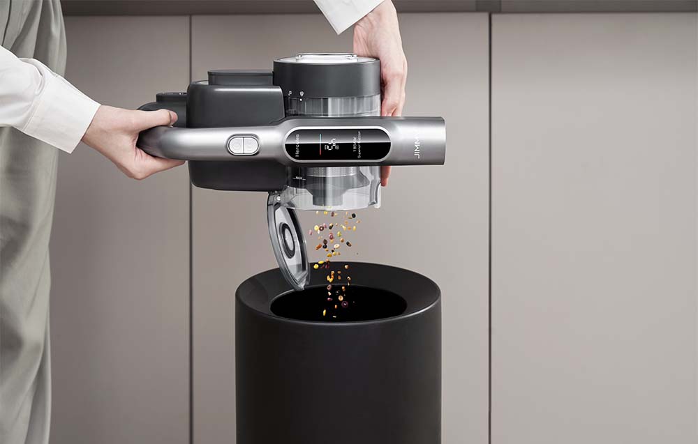 JIMMY H8 Flex е лека и ергономична, което я прави комфортна за използване. Големият 500 мл контейнер за прах се изпразва само с едно натискане на бутон – без да си цапате ръцете. А специалната стенна стойка позволява едновременно съхранение и зареждане на устройството.