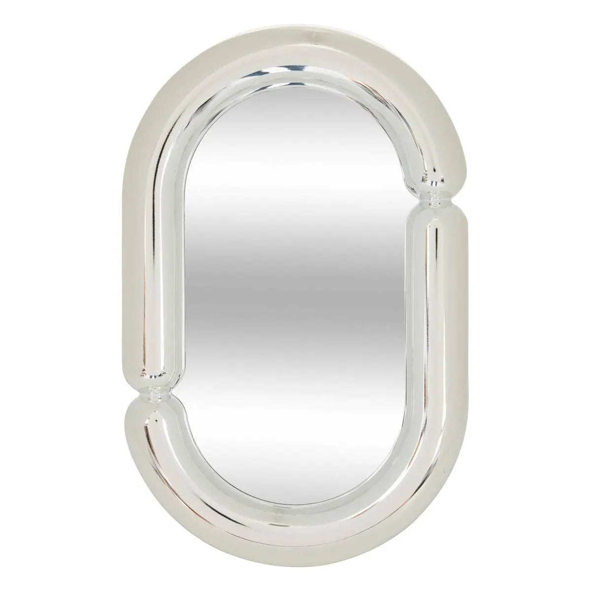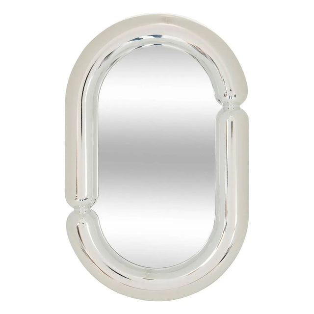 Компактно огледало за маса с височина 30 см и размери 19 x 2 см. Сребристата рамка от пластмаса с елегантен ефект придава стил, а практичният дизайн го прави подходящо за тоалетка, бюро или козметичен кът.