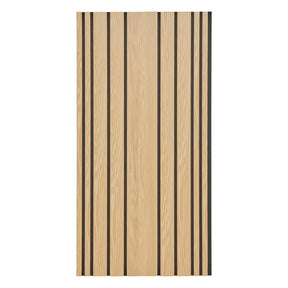 Декоративният панел Colva е практично и елегантно решение за съвременния интериор. Изработен от MDF с текстурирано покритие в светъл дъбов ефект и черна филцова основа от рециклиран полиестер, той съчетава стил и функционалност. Ламелите с различна ширина и дебелина 2,1 см осигуряват акустична изолация, като намаляват ехо ефекта в помещението.