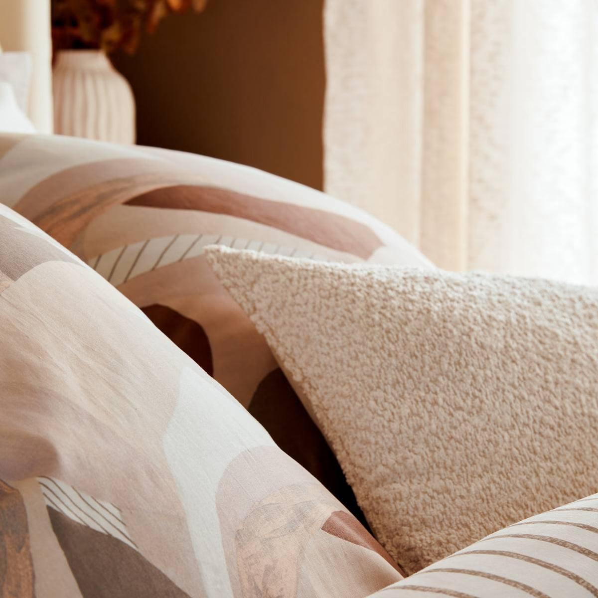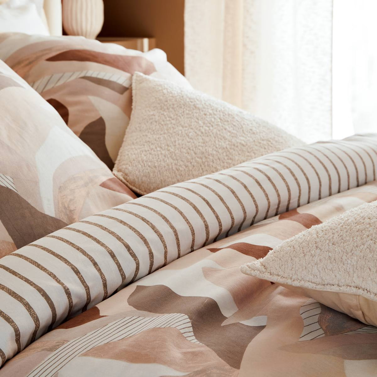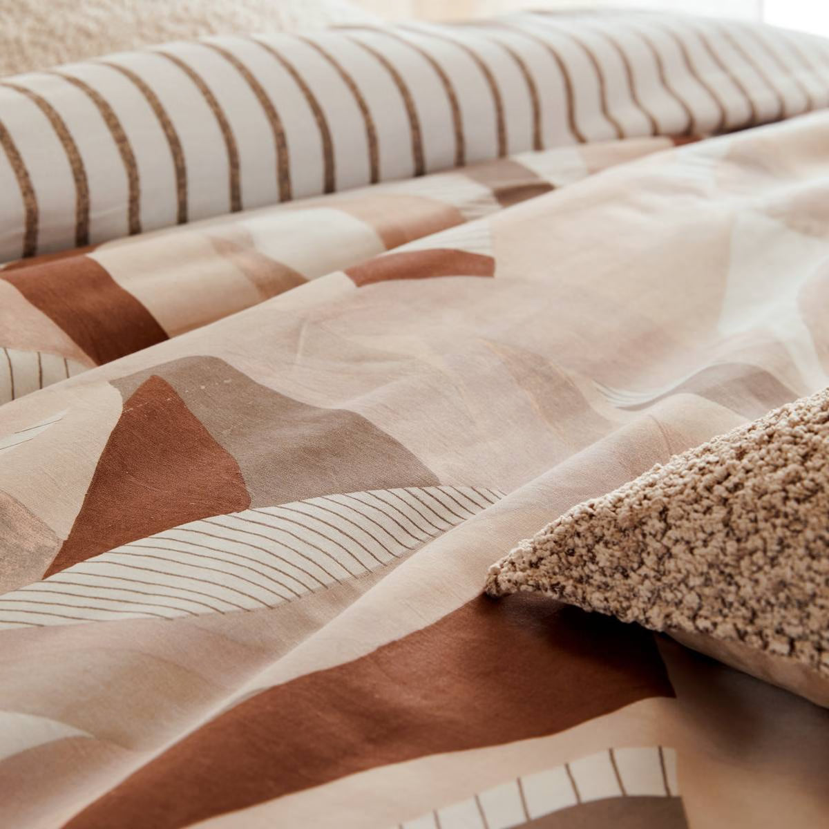 Подарете си уют и спокойствие в спалнята с елегантния комплект спално бельо Nalh, изработен от 100% естествен памук. Меката и дишаща материя с плътност 57 нишки/см² осигурява комфорт през всички сезони и приятен допир, като в същото време е устойчива на многократно пране. Бежовият цвят и фините декоративни елементи придават стилен, балансиран и естествен вид на спалнята.