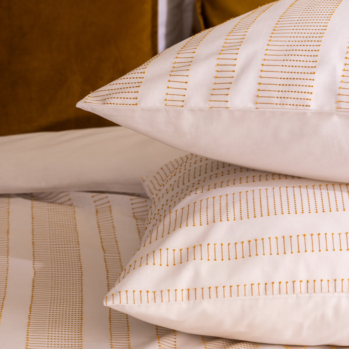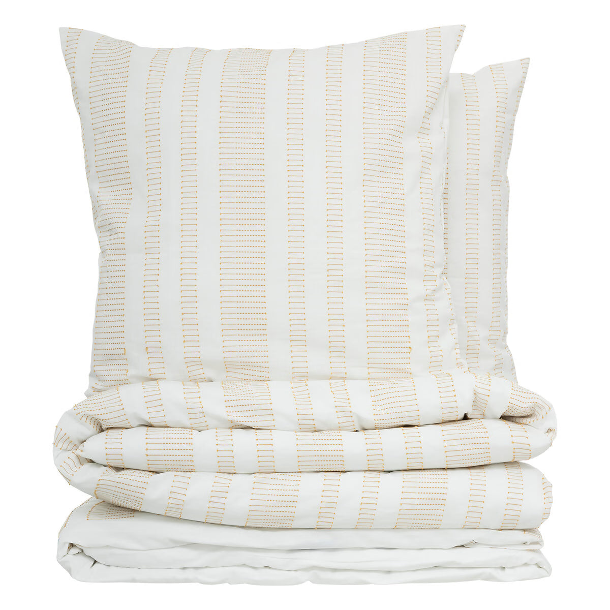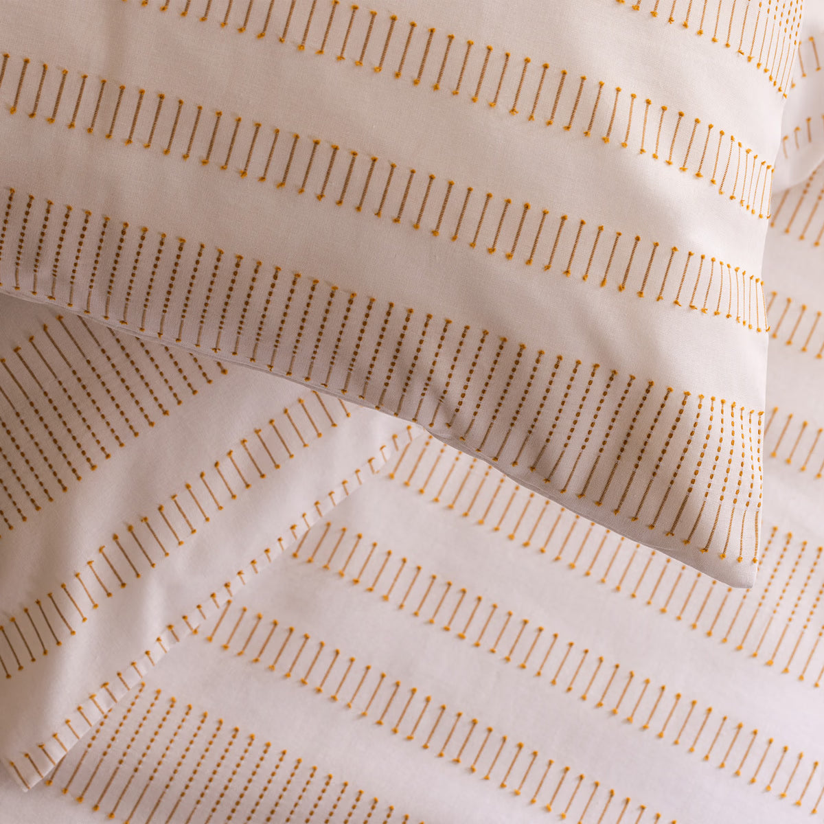 Подарете си уют и спокойствие в спалнята с елегантния комплект спално бельо Isao, изработен от 100% естествен памук. Фино изтъканата dobby материя с мотив тъкан релеф осигурява мекота, деликатна текстура и издръжливост. С високата плътност от 115 нишки/см² комплектът съчетава комфорт и усещане за качество, подходящо за модерни и класически интериори. Благодарение на естествения материал кожата диша свободно, а повърхността остава мека и приятна през всички сезони.