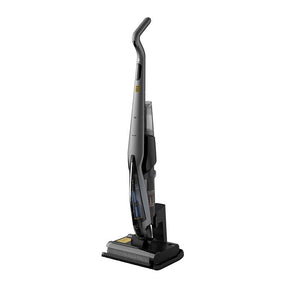 Безжичната вертикална прахосмукачка Deerma DEM-VX96W е иновационен уред, който комбинира прахосмучене и почистване на пода, спестявайки ви време и усилия. Със своите две четки, тя едновременно почиства и изтърква пода, като автоматично разпознава типа на замърсяването - било то твърдо, като зърна от зърнени храни, или течност, като мляко. Моторът с мощност 15kPa осигурява ефективно засмукване и стерилизация на повърхността чрез електролитична стерилизация на водата.
