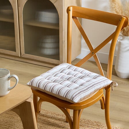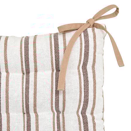 Възглавница за стол Groove с размери 38 × 38 × 4,5 см в райе бежов цвят. Изработена от памук, възглавницата осигурява комфорт и мекота при седене, подходяща за трапезни или кухненски столове, като добавя уют и стилен акцент в интериора.